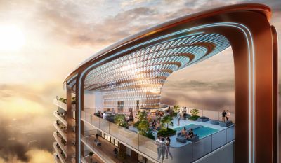The residences themselves—offered in exquisite 3, 4 and 5 bed configurations—are crafted as collectible masterpieces. They feature expansive wrap-around balconies that frame dramatic views from every direction. The architecture is inspired by the precision and artistry of haute horology, with every edge, curve, and angle designed to reflect a sense of balance and sculptural elegance. Elevated approximately 30 meters above ground level, the homes open to uninterrupted horizons, making every living space feel like a private sky suite floating above the city.
